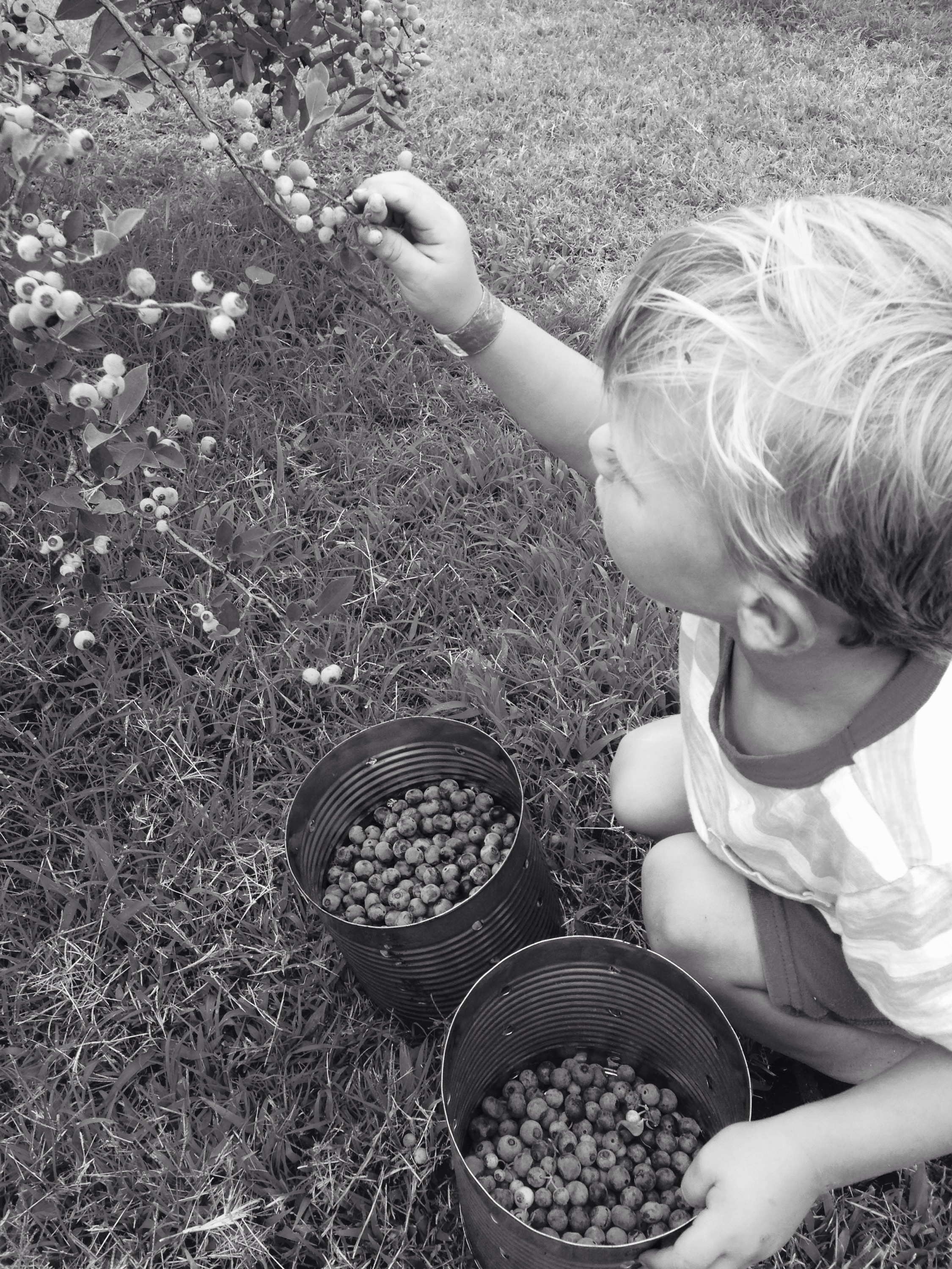 Bennett enjoyed pickin’ berries, of course this was after he was done chasing the chickens around the farm.