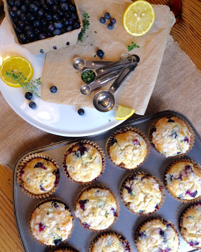 There is so many things I enjoy blueberries in but the first thing that comes to my mind is blueberry muffins! They were a favorite food of mine growing up and lately I have been on a lemon and herb kick. So I thought combining the herbs and lemon in the blueberry muffins sounded delightful! These scrumptious muffins met ALL my expectations!