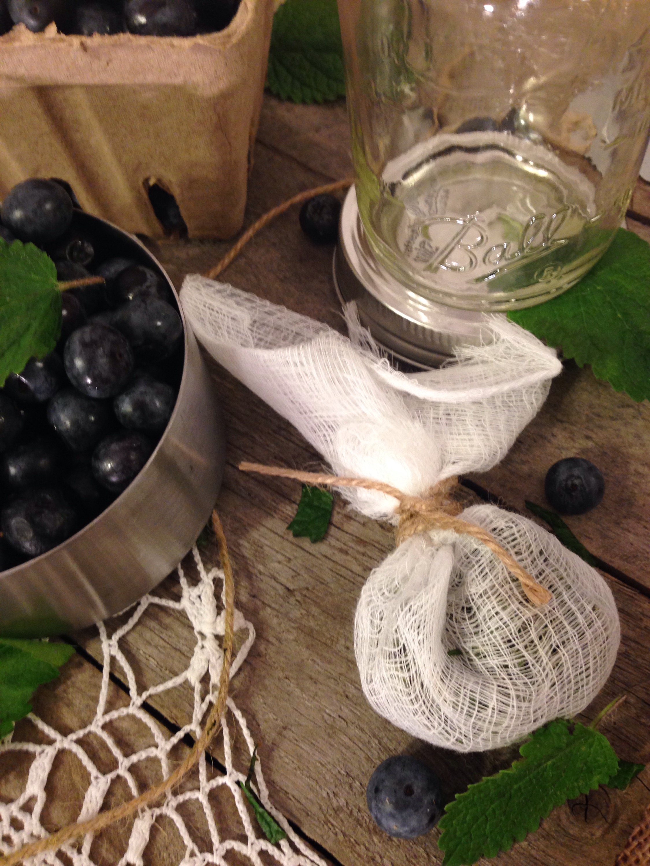 Chop lemon balm into small ribbons and cut a small square about 6×6 out of the cheese cloth. Place chopped lemon balm into the center of the square. Bring up four corners of your cheese cloth and tie off with twine. You have now made a bouquet garni! Which is simply a fancy word for herbs tied with twine in a cheese cloth.
