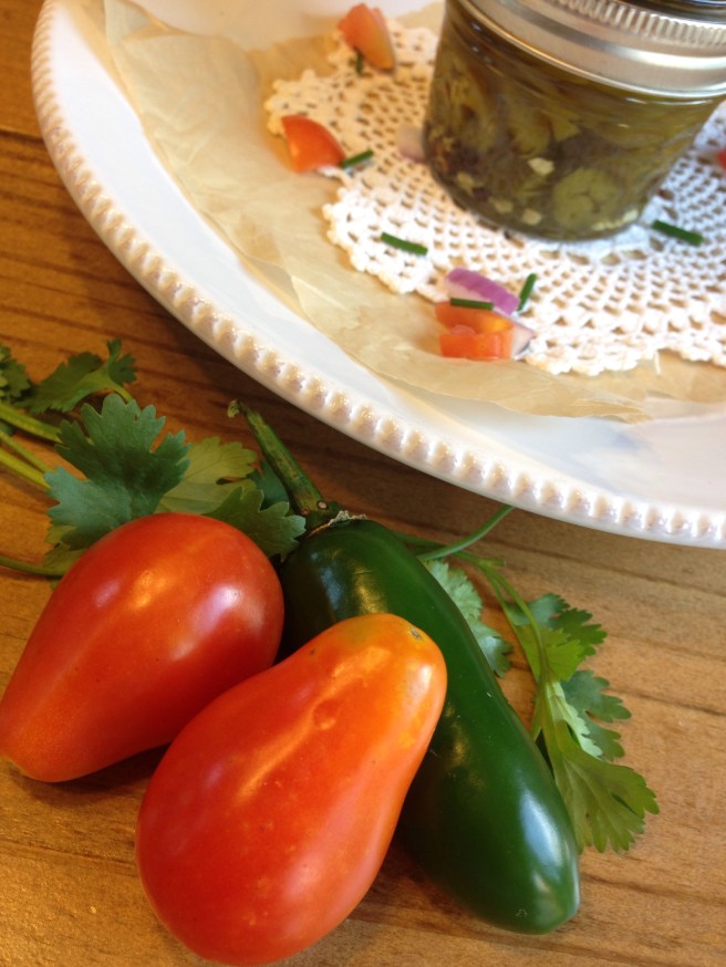 This is one of my favorite ways to use those pickled jalapenos from the garden. If you missed my post on how to pickle your own jalapenos click here Pickling Jalapenos. I also LOVE making this recipe because it has so many ingredients that come from the garden, fresh tomatoes,chives, cilantro and pickled jalapenos. The more ingredients from the garden the BETTER!