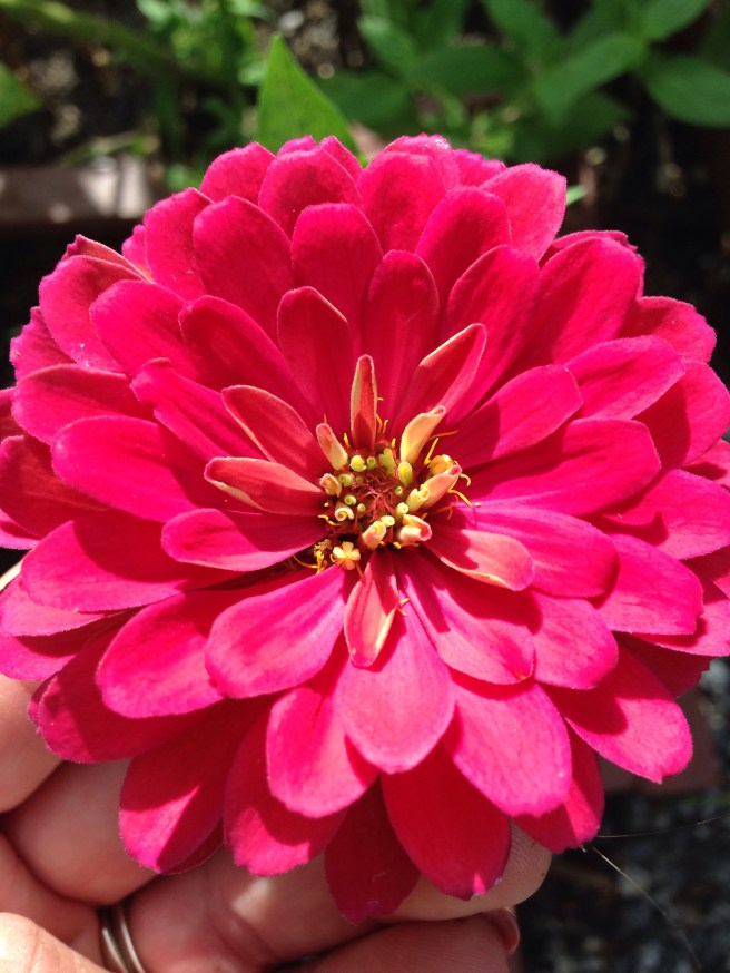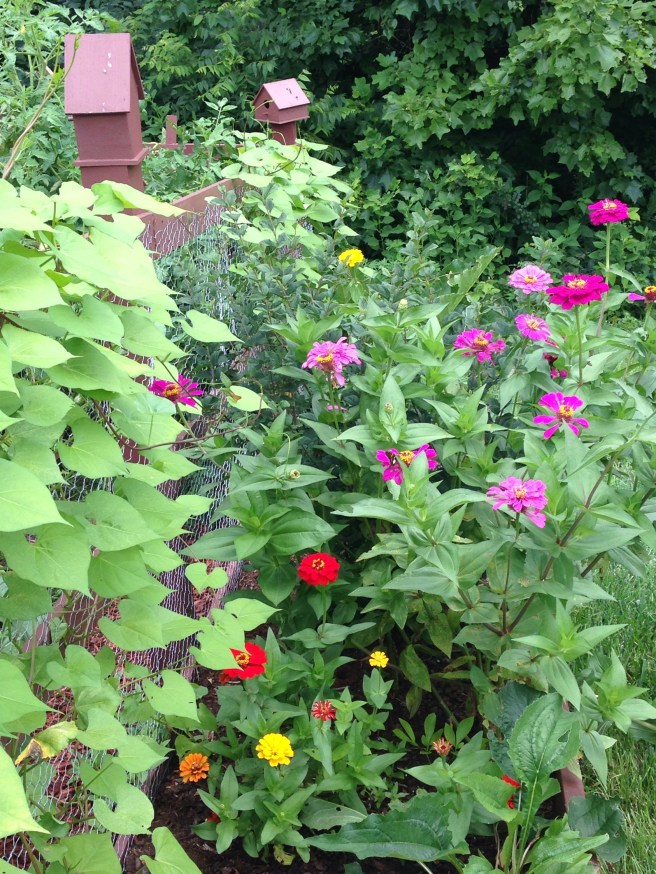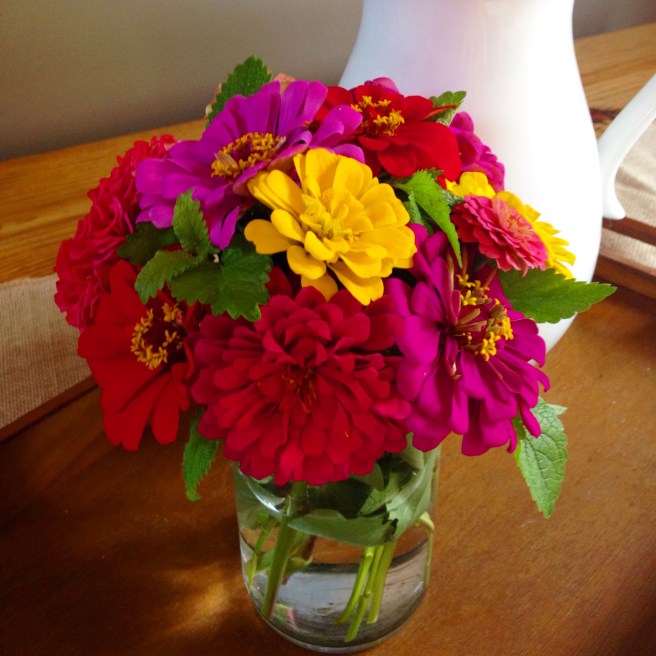 Don’t get me wrong I love any time of year that I can pull home-grown veggies from my back yard but summer tops all of the other growing seasons! One of the reasons is because my Zinnias are in full bloom and these beautiful ladies show up to keep me company!