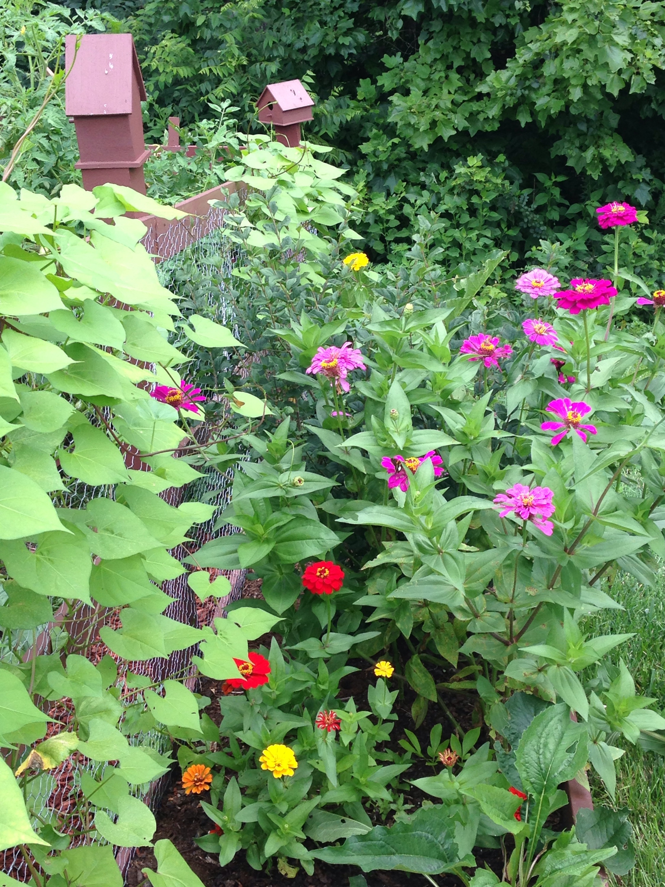 An if your lucky your Zinnias might bring the brilliantly bright golden finch to your garden. A pleasant surprise when you spot them!