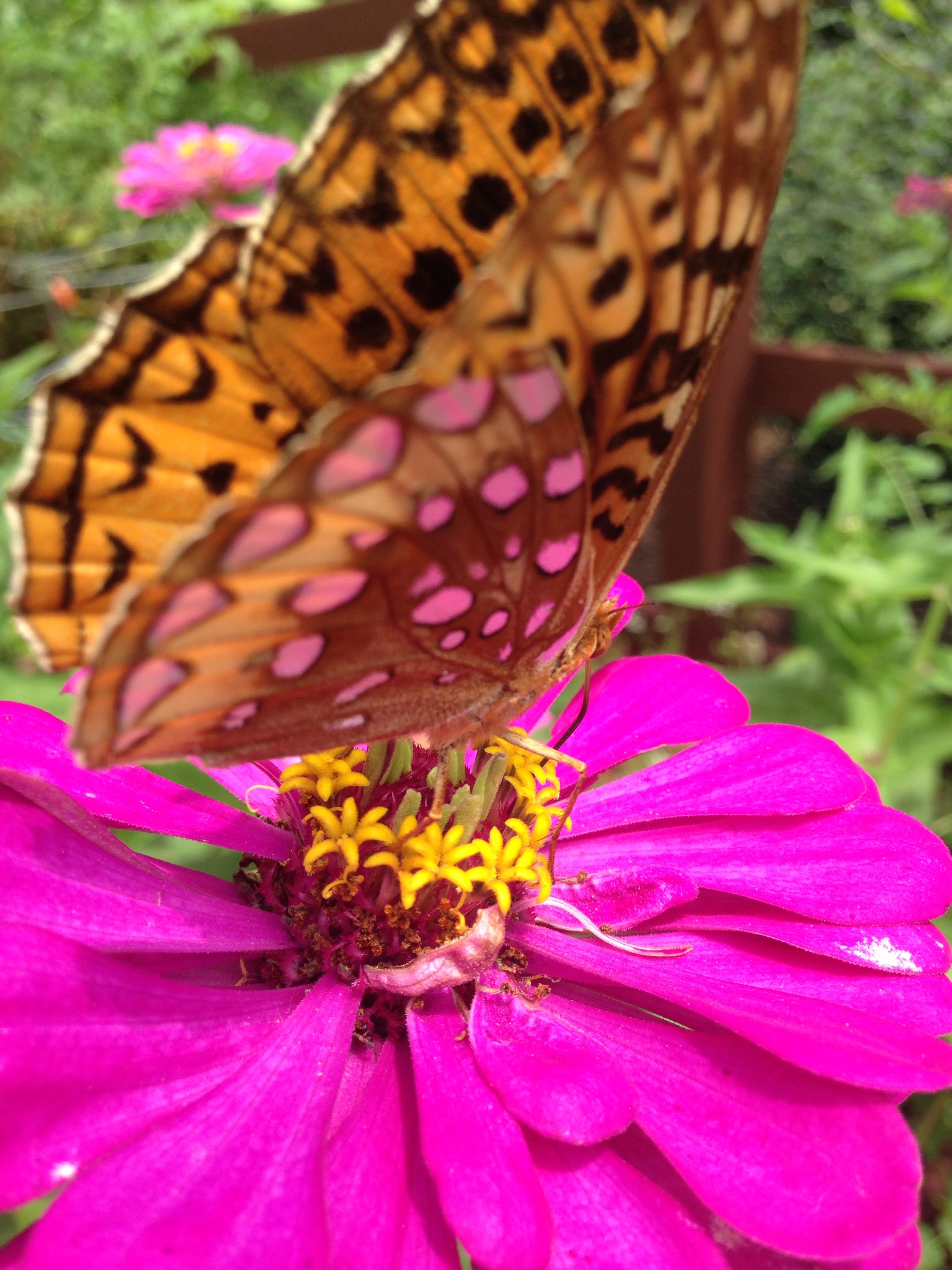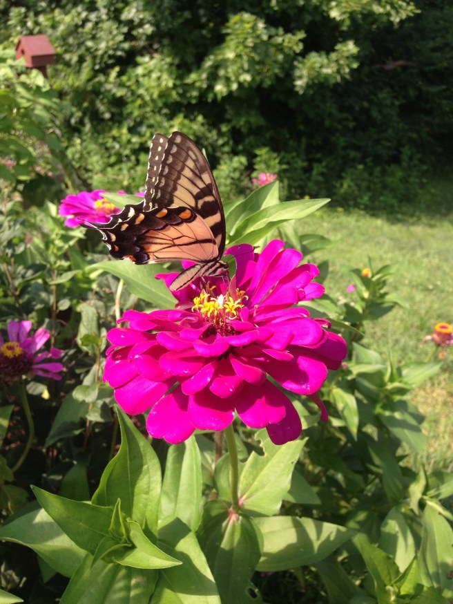 It is not until about mid July beginning of August that I spot these gorgeous creatures showing off their beautiful wings in my garden. Each Spring I make sure to plant my Zinnias so these butterflies come to visit! I had to share with y’all the beauty my zinnias offer me!