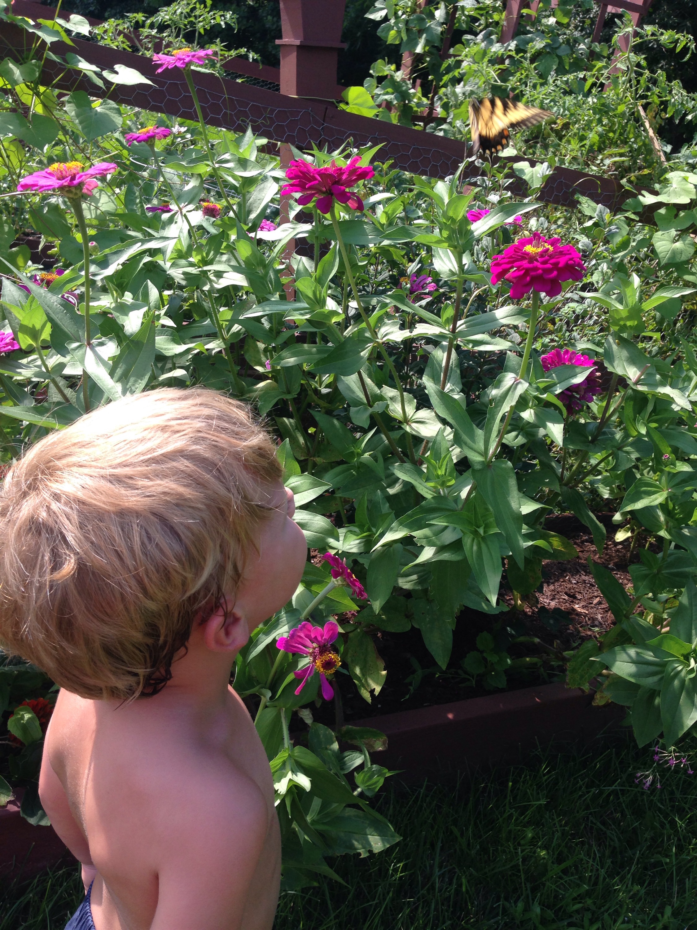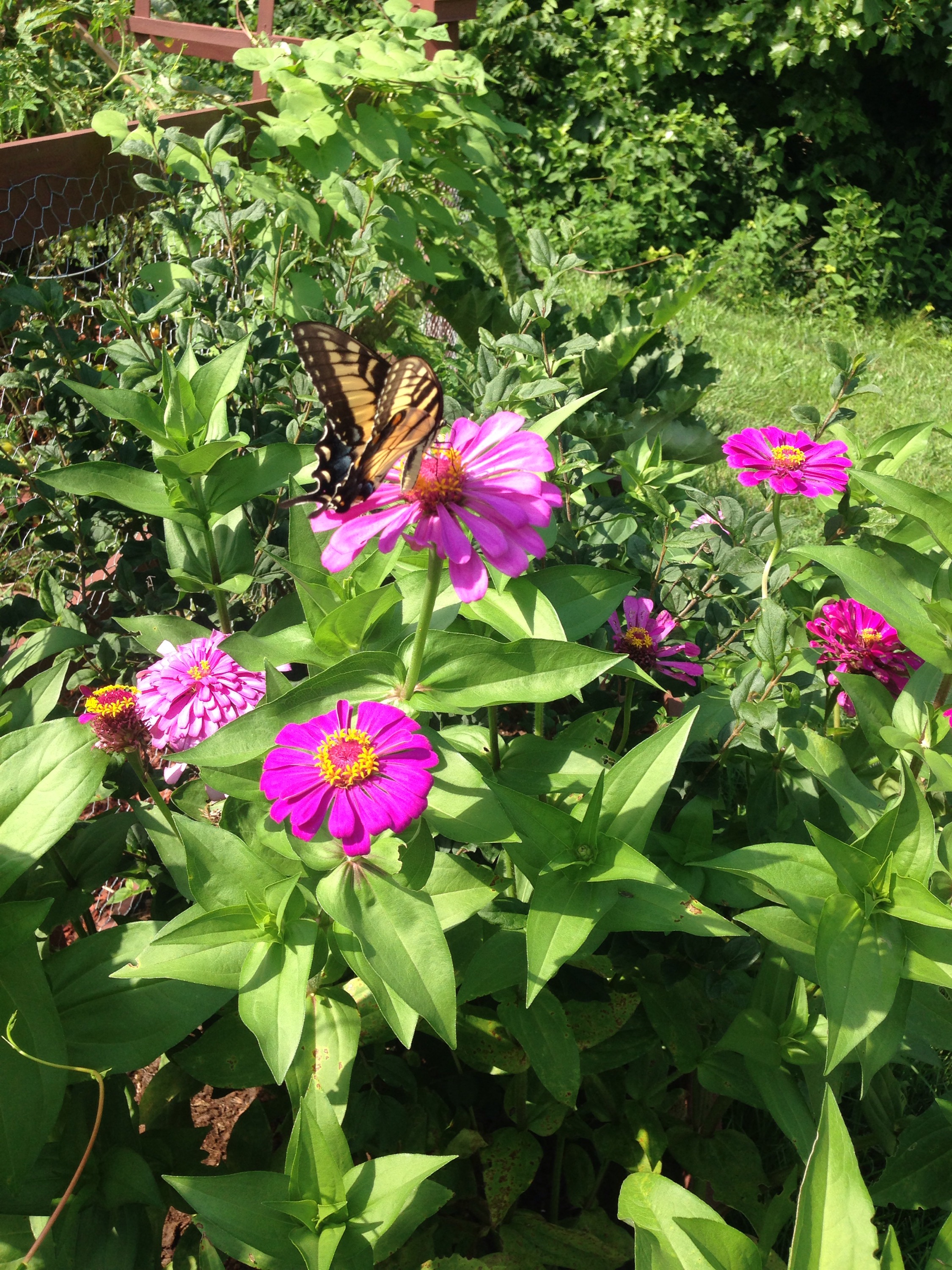 Zinnias are a MUST in the garden. They are super simple to grow, very low maintenance and attract these winged lovelies! They contribute great pops of bright color threw out your garden, standing out against that lush green foliage on your crops and did I mention they bring beautiful garden friends! Oh, I did. Sorry I just find the butterflies so captivating! I just love seeing butterflies in my garden while I am out there working, enjoying what I had sown months before.