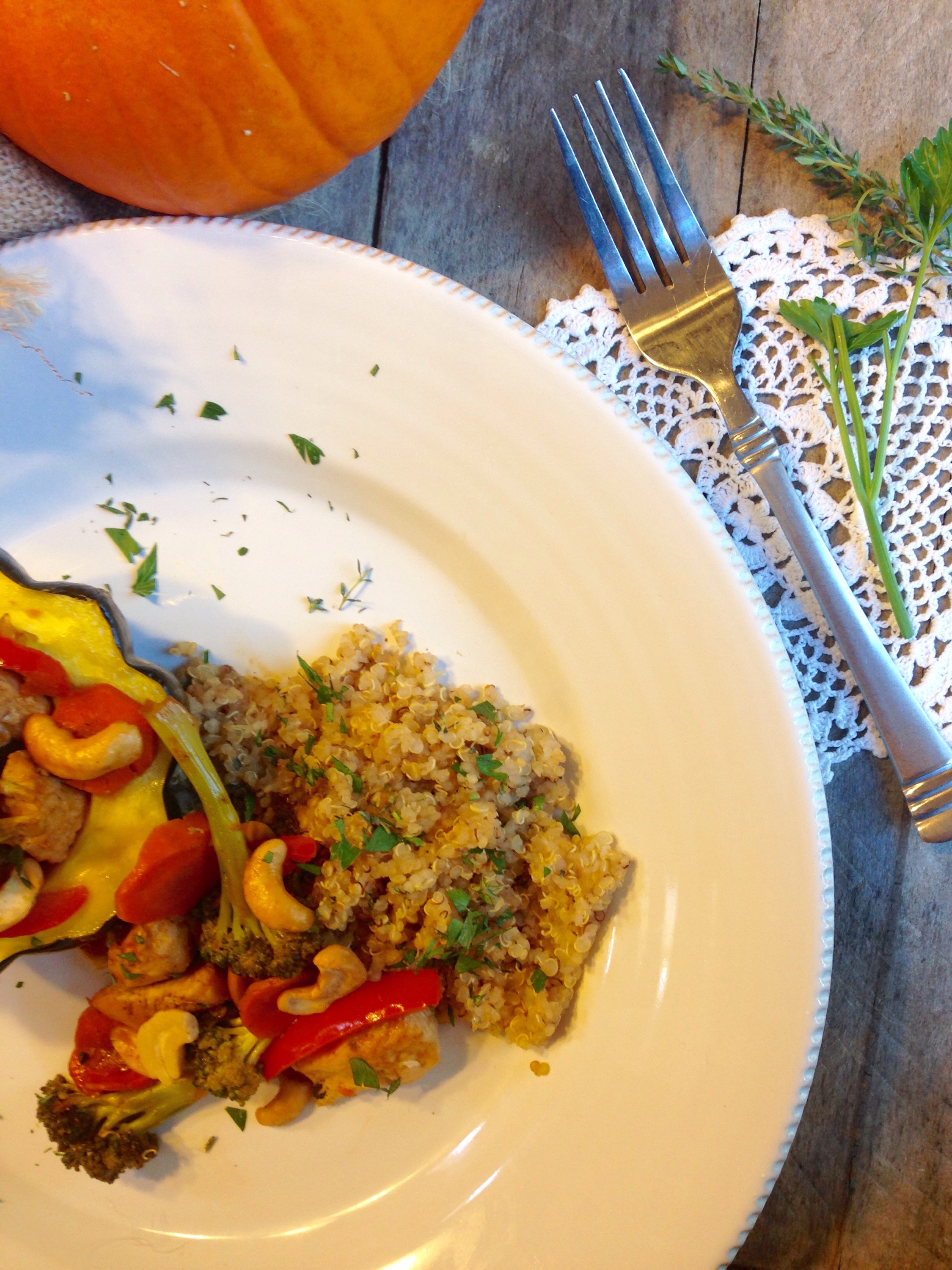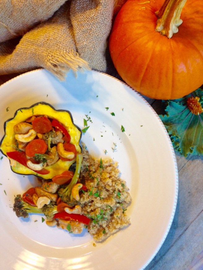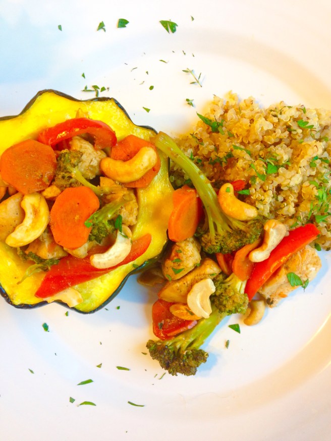 2 thoughts on “Acorn Squash Chicken Cashew Stir Fry + Herb Toasted Quinoa”