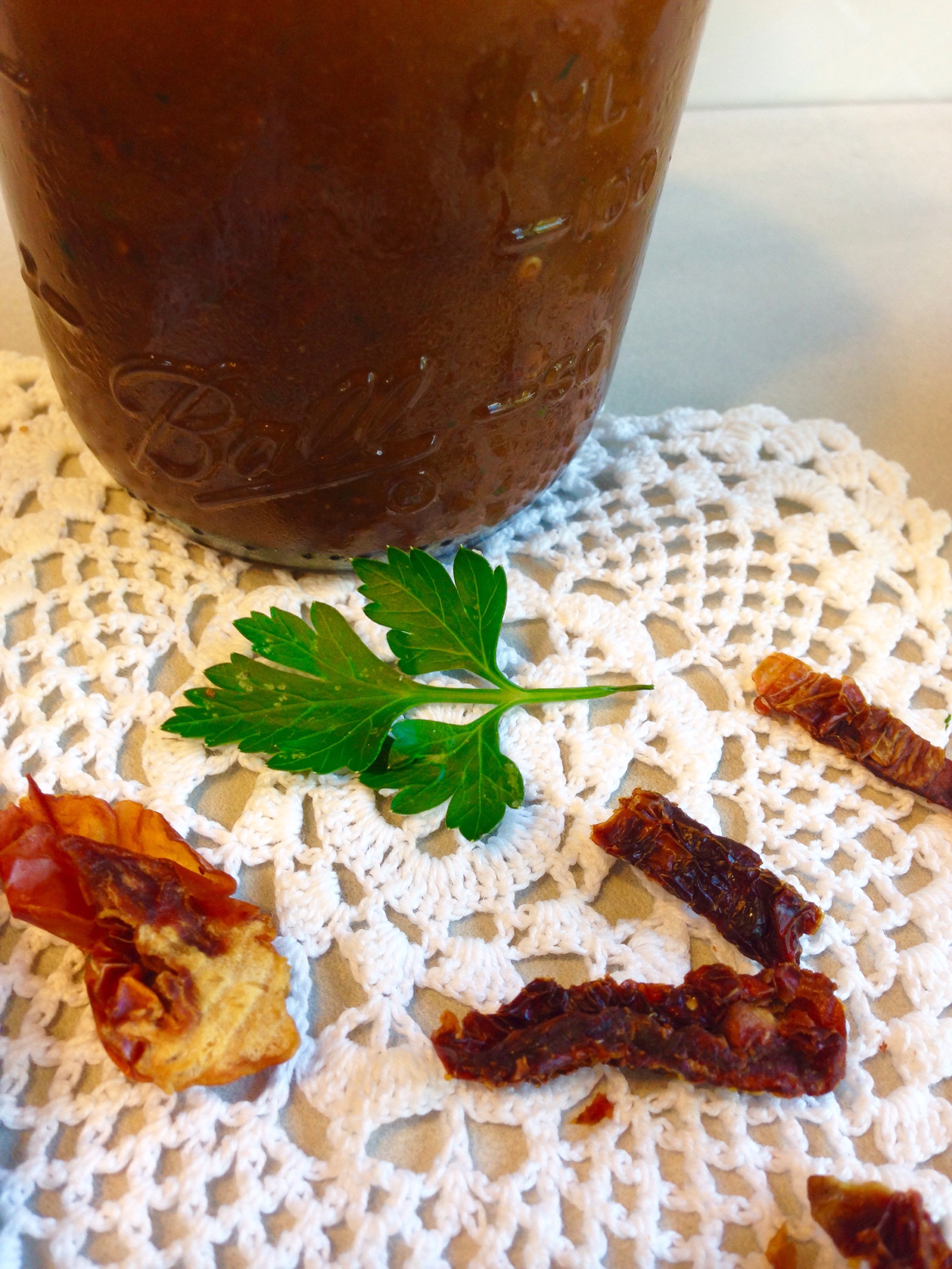 Start by making your dressing. In a food processor blend sun-dried tomatoes, parsley and salt and pepper until smooth. In the mason jar add olive oil then add sun-dried tomato mixture. Put the lid of the mason jar and shake well. Place in the refrigerator until ready to put on salad. Of course you don’t have to do this in a mason jar but it is easy to make homemade dressing in a mason jar, perfect for shaking and storing! This dressing will store for up to three days in the fridge.