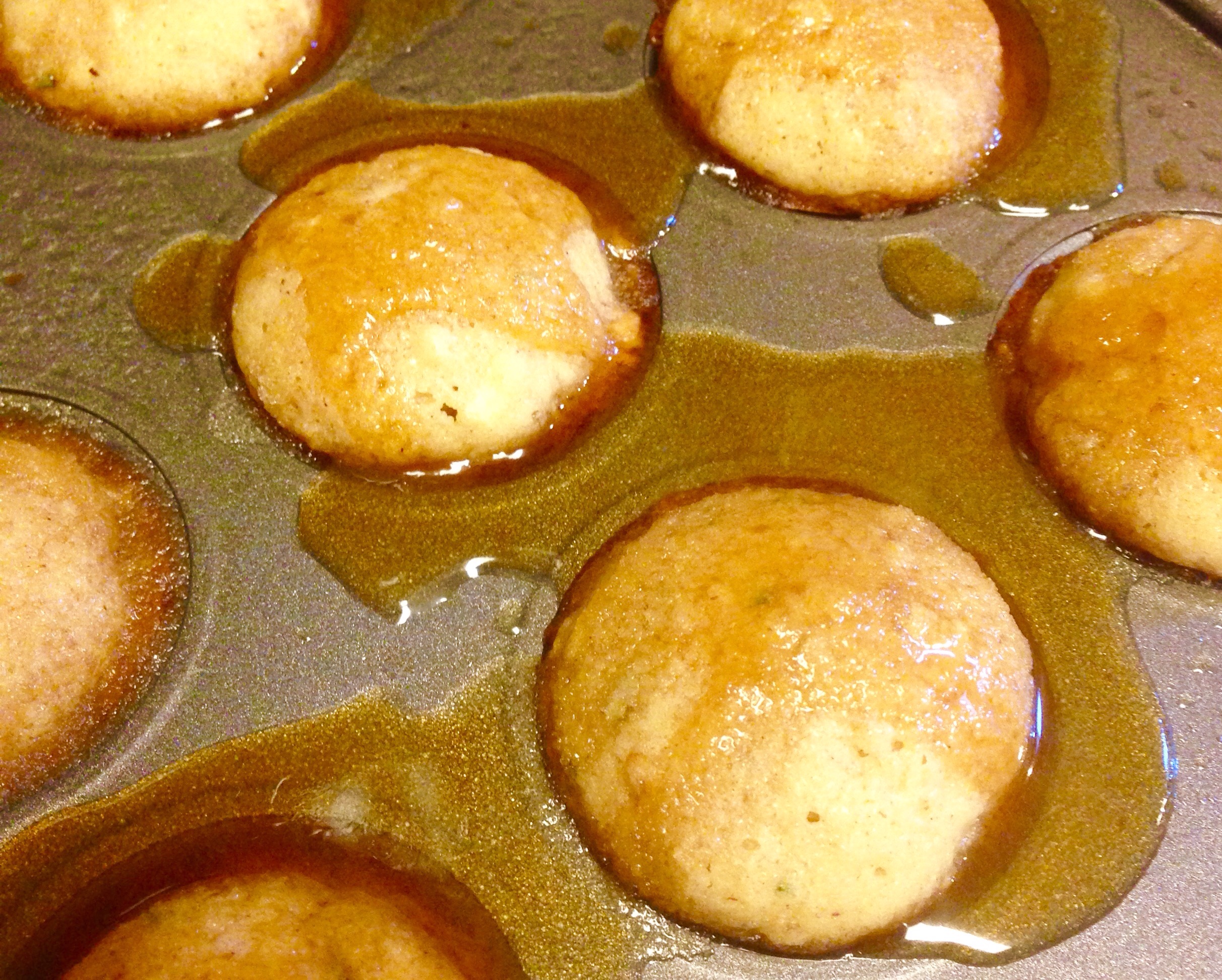 When the muffins are done baking remove from oven and pour glaze right over the muffins still in the muffin tin. Dont be afraid to really cover the muffins in the glaze. The hot muffins will soak up most of the glaze. Making them even more moist and delicious! Serve them while hot! Make sure to remove muffins from tin while they are still warm or they will stick to the pan.