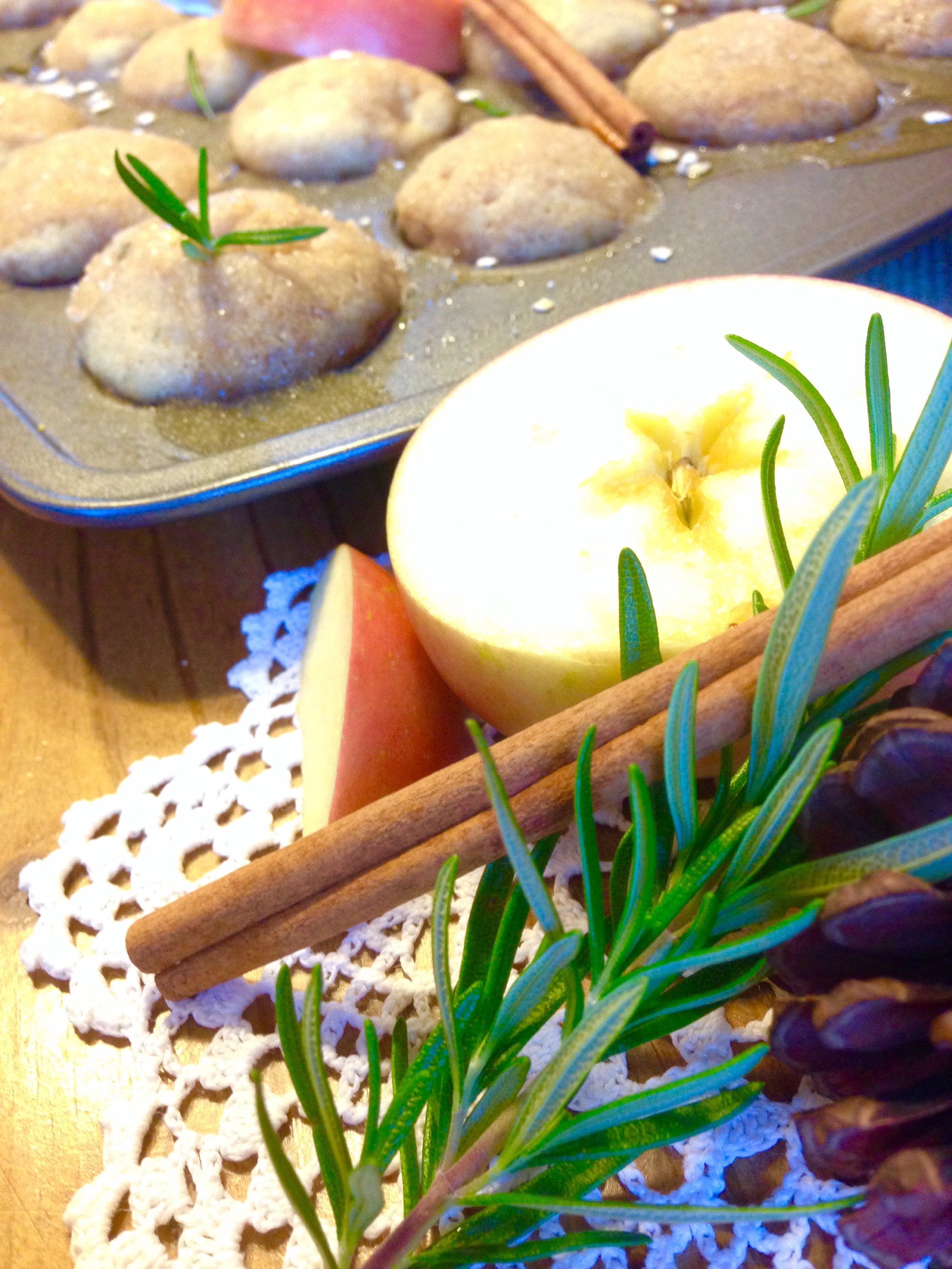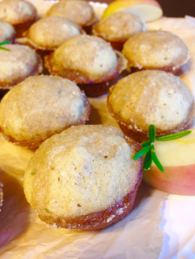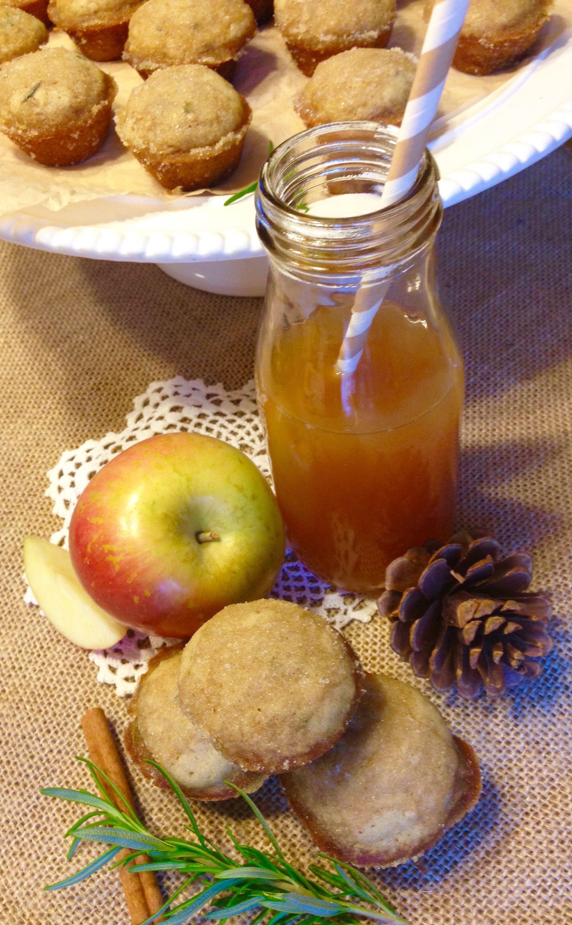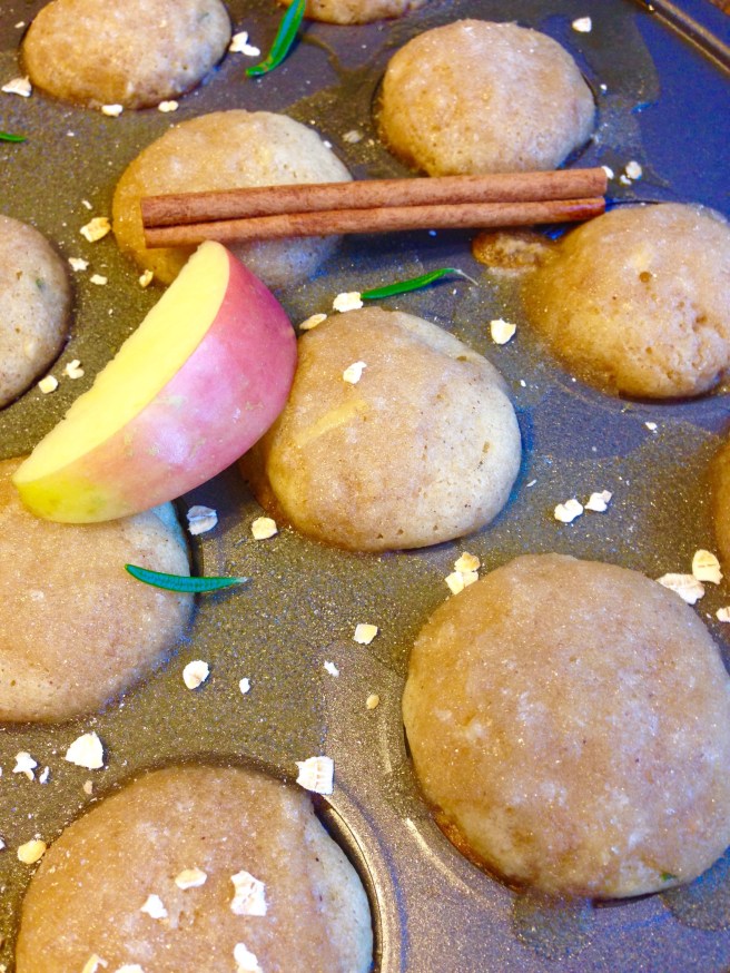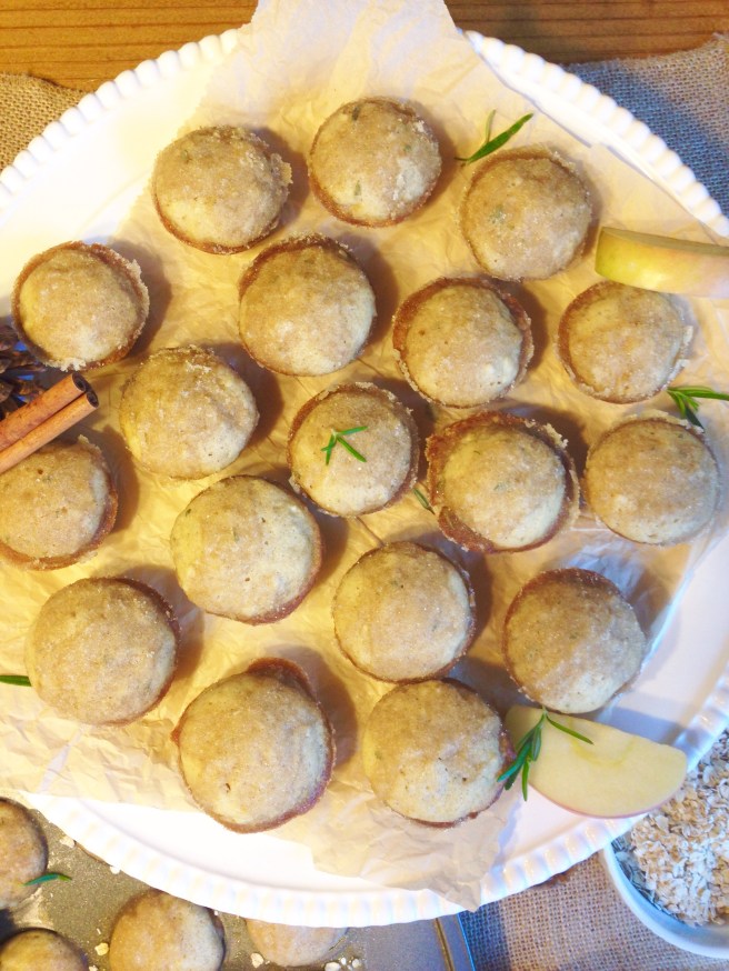 I have never baked with apple cider and it made these mini muffins super moist and oh so delicious! The cinnamon and rosemary are a nice warm addition and compliment the apple and oats in the muffins really well.