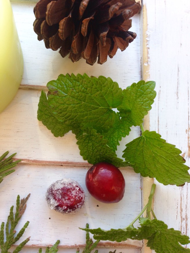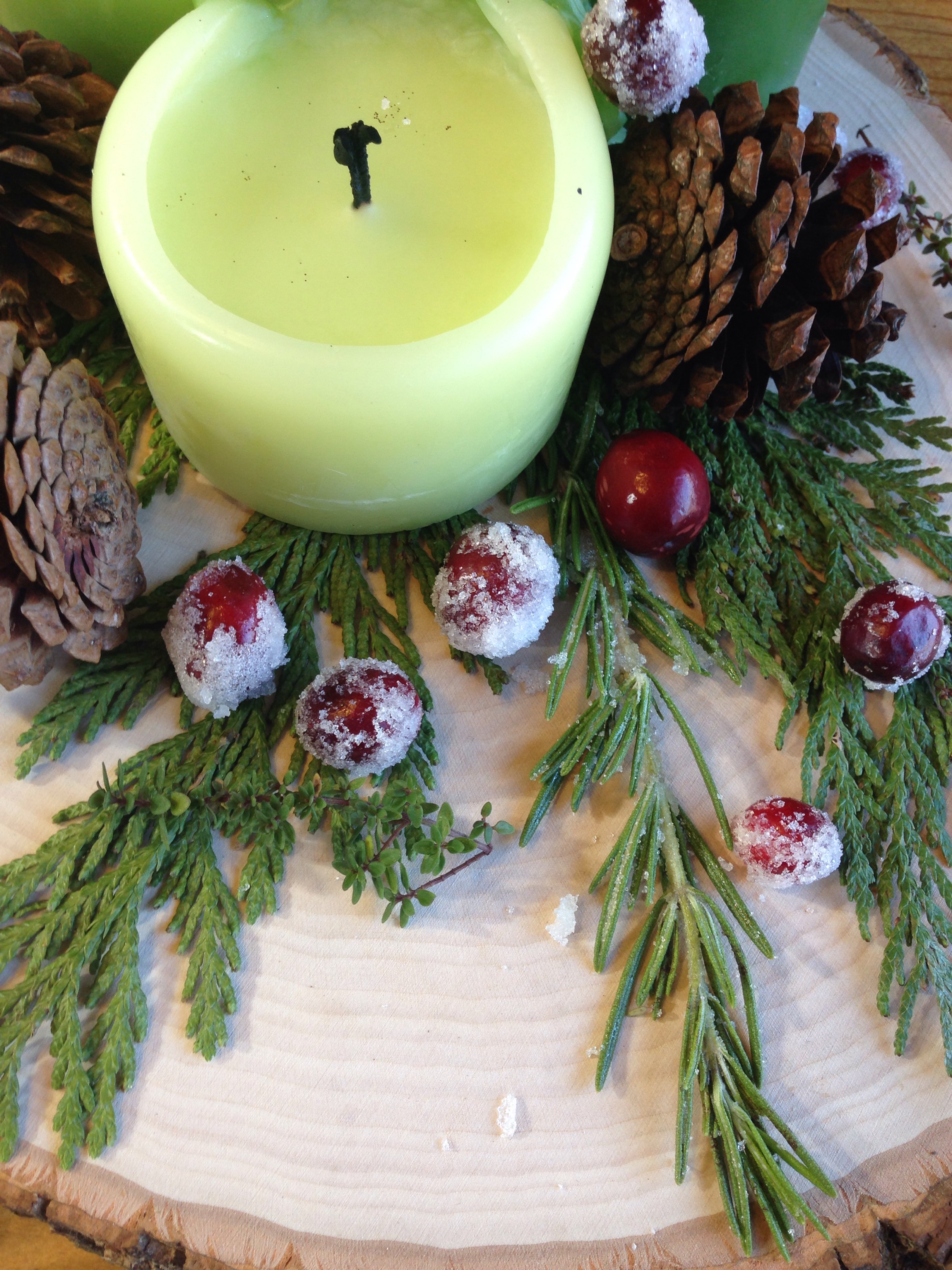 7. Place your candied cranberries randomly around the centerpiece. Light the candles and ENJOY!