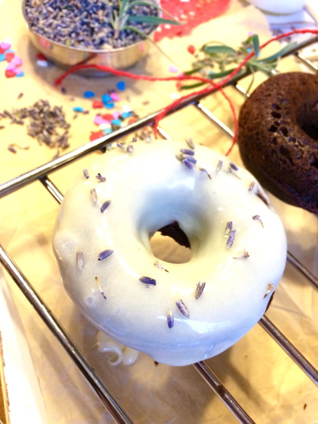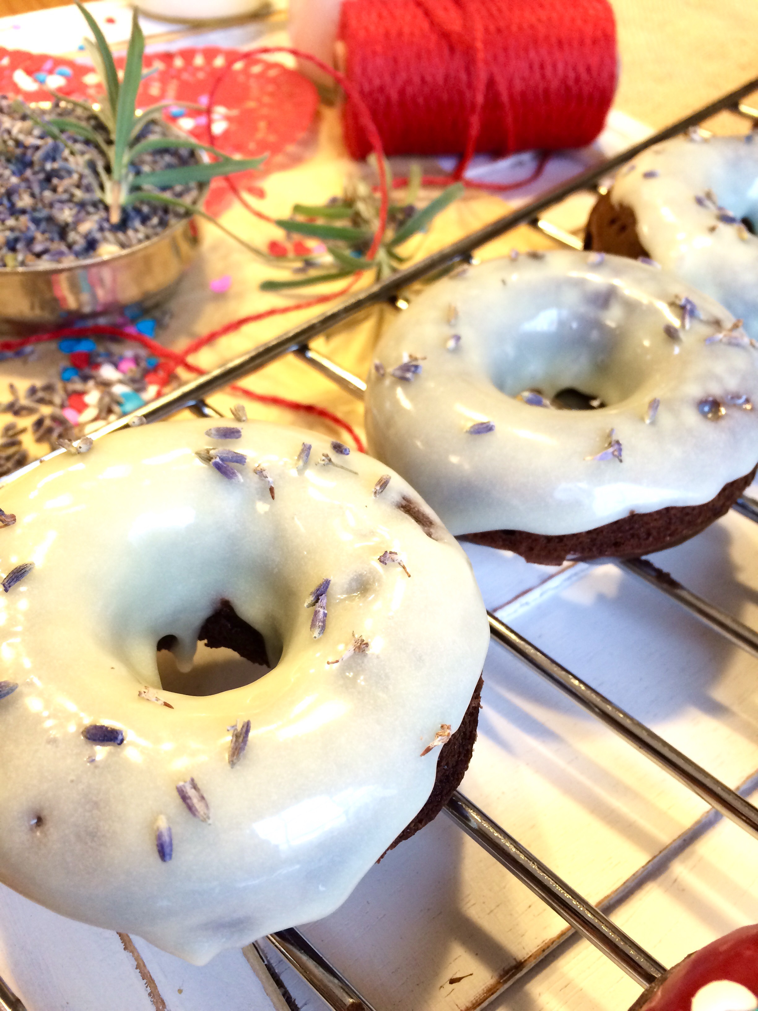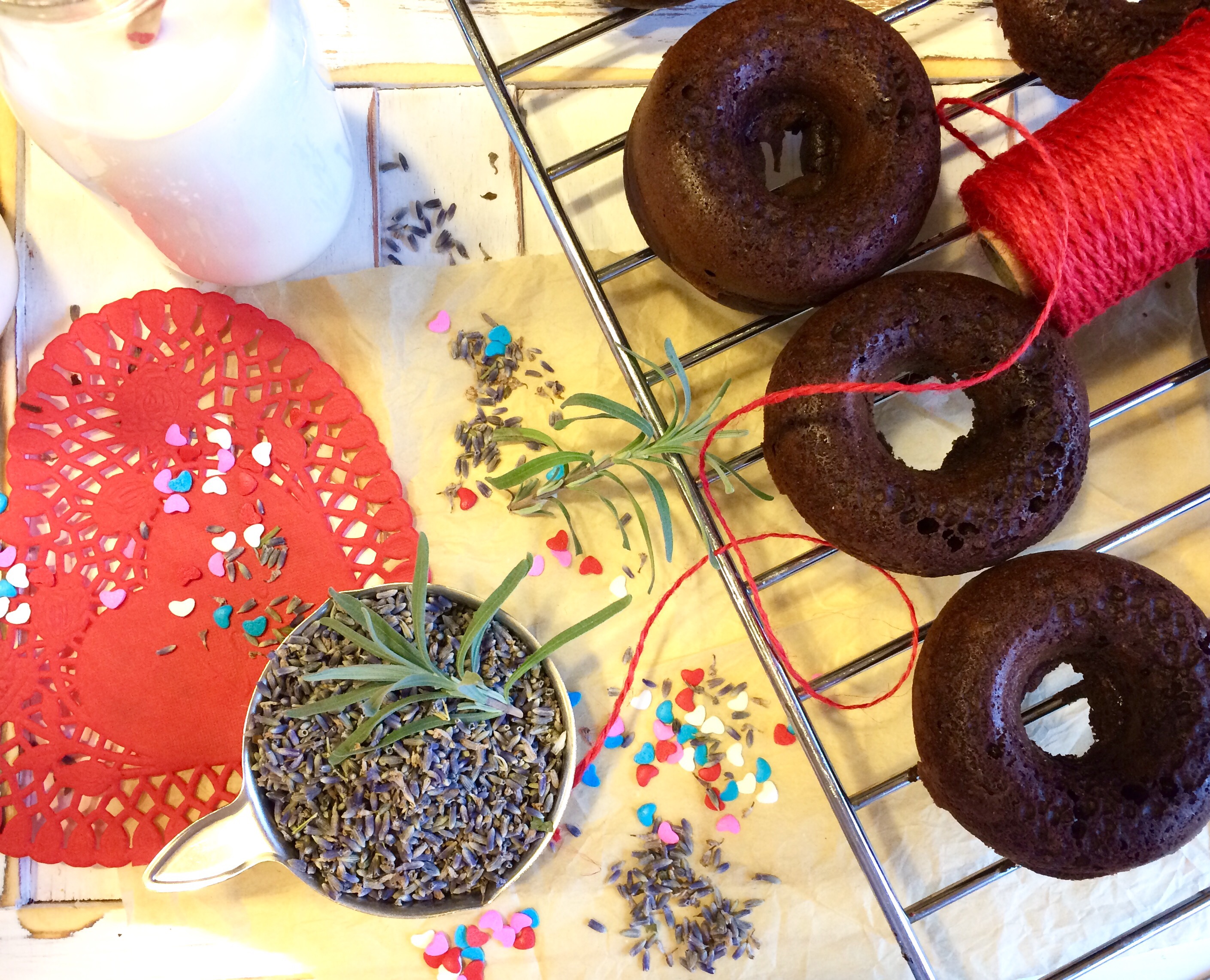 So, the other day while the snow fell I made lavender donuts and dreamt of spring. I don’t know what it is about lavender but I LOVE incorporating it in my desserts! The floral herb pairs nicely with the decadent chocolate. I thought lavender would be a perfect herb to incorporate in festive valentine sweet treats! There is something sweet and romantic about lavender! Making it completely appropriate for Valentine’s Day! Don’t you think?
