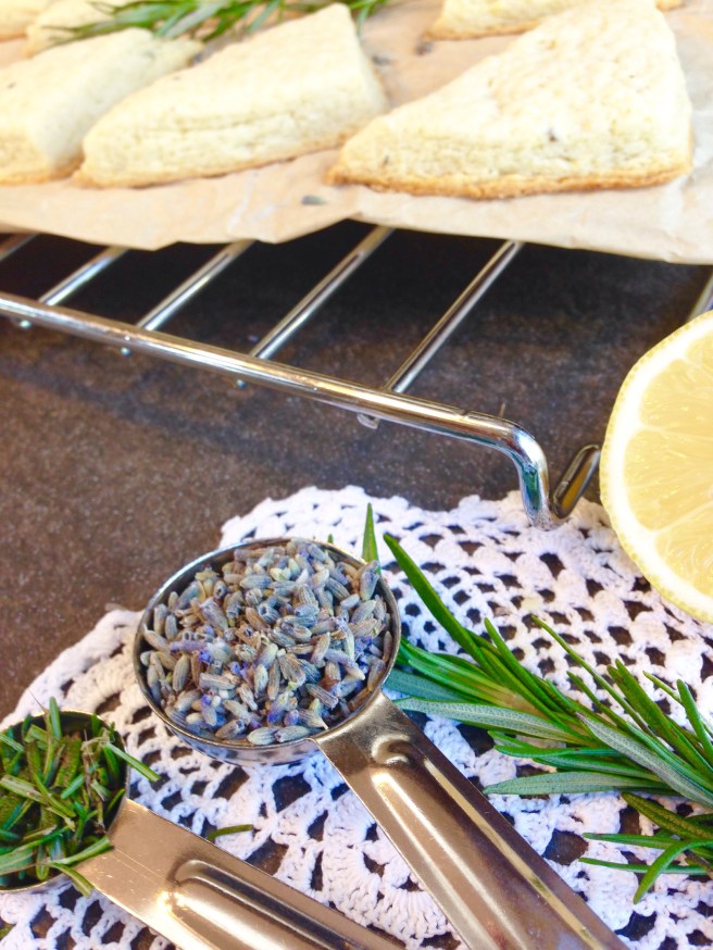 These scones are soft, moist and taste lovely! The lavender and rosemary from the garden are a delicious duo!