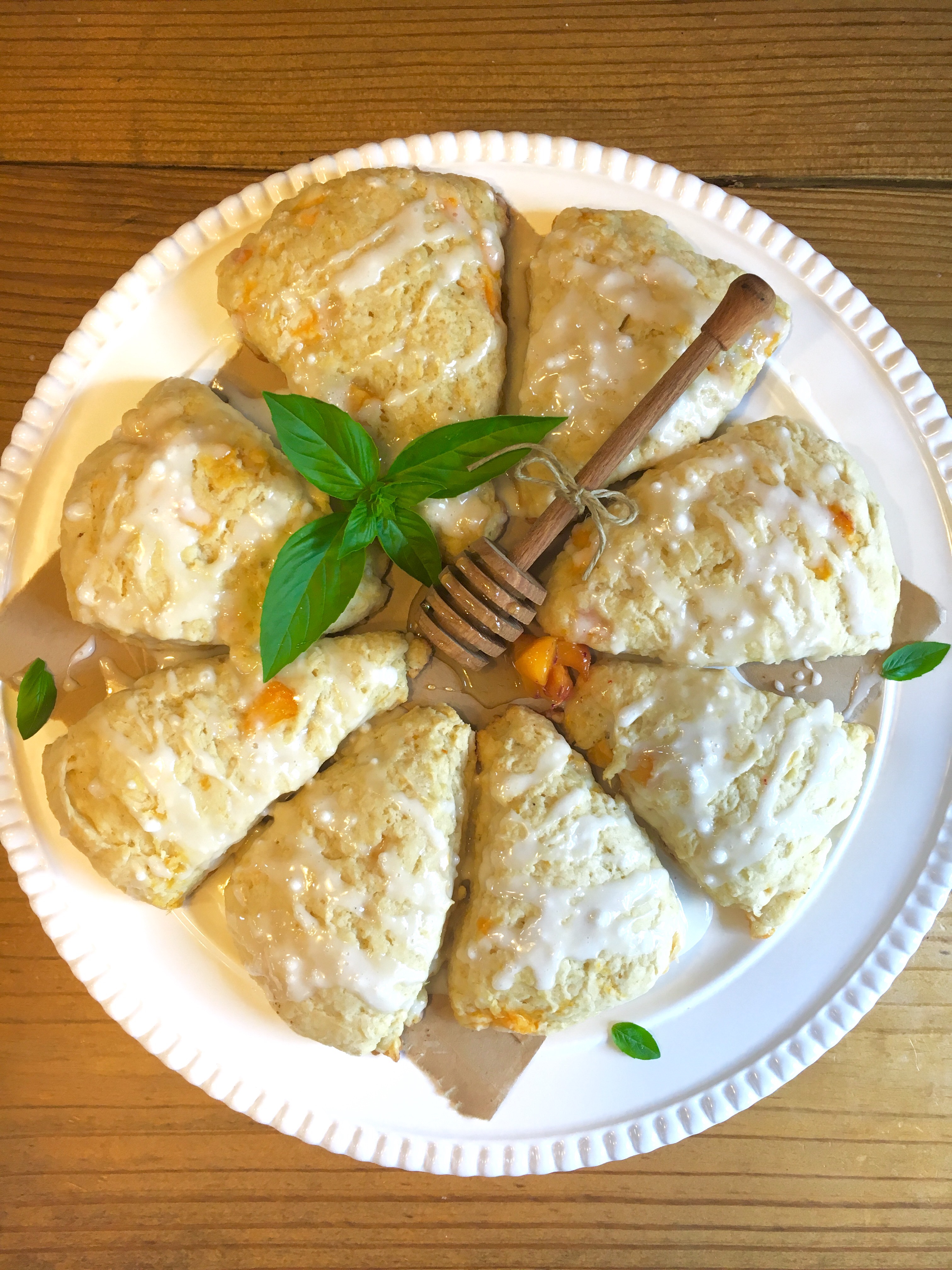 These scones are super yummy, my boys absolutely devoured these! It’s a great and unique way to use those abundance of peaches you picked and some of that basil growing in the garden.