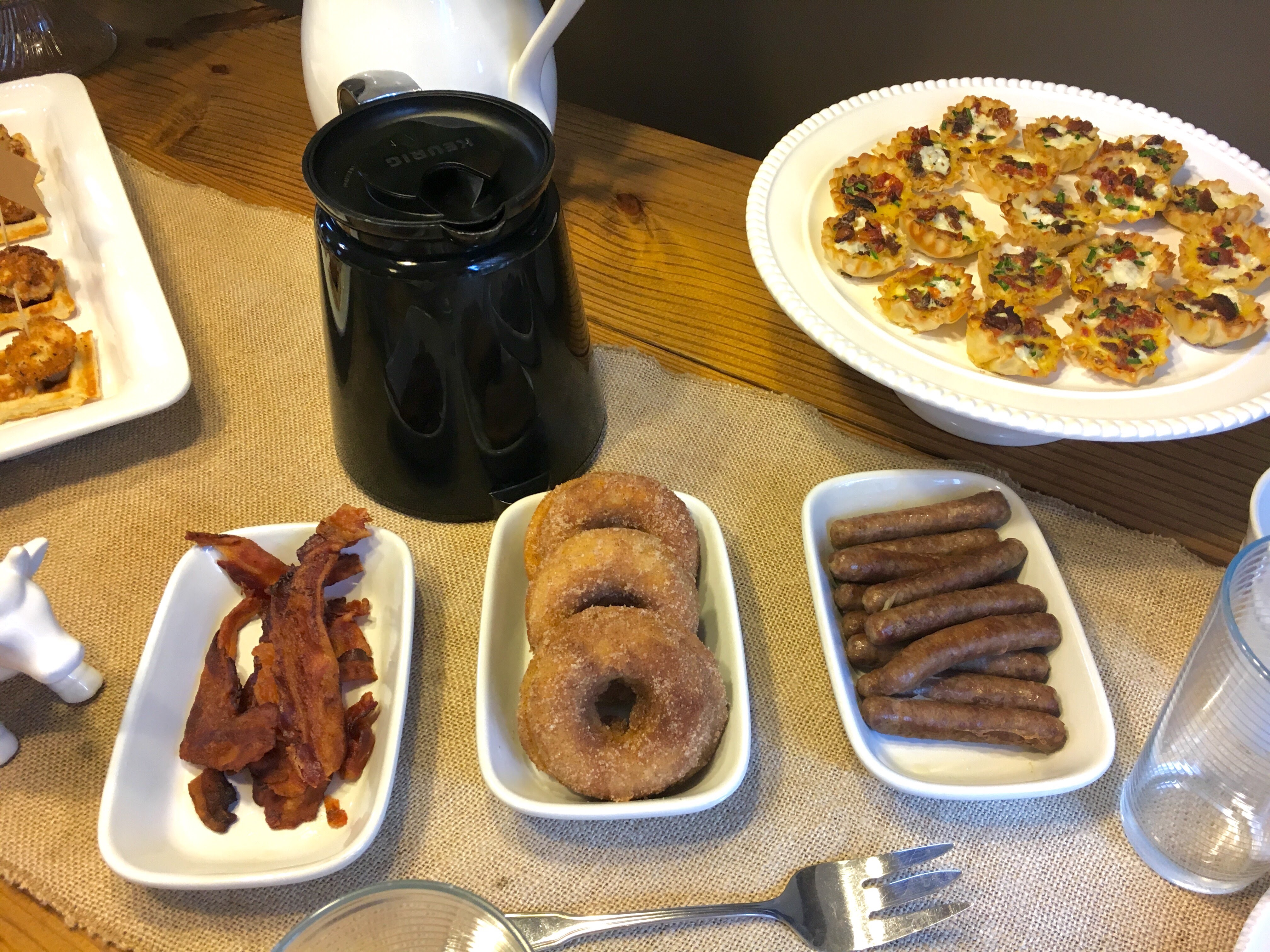 TIP: I left the chicken and waffles to make the morning of. This was the only item on the menu I didn’t make a head of time. The pepper jelly syrup I made the night before and reheated before serving.