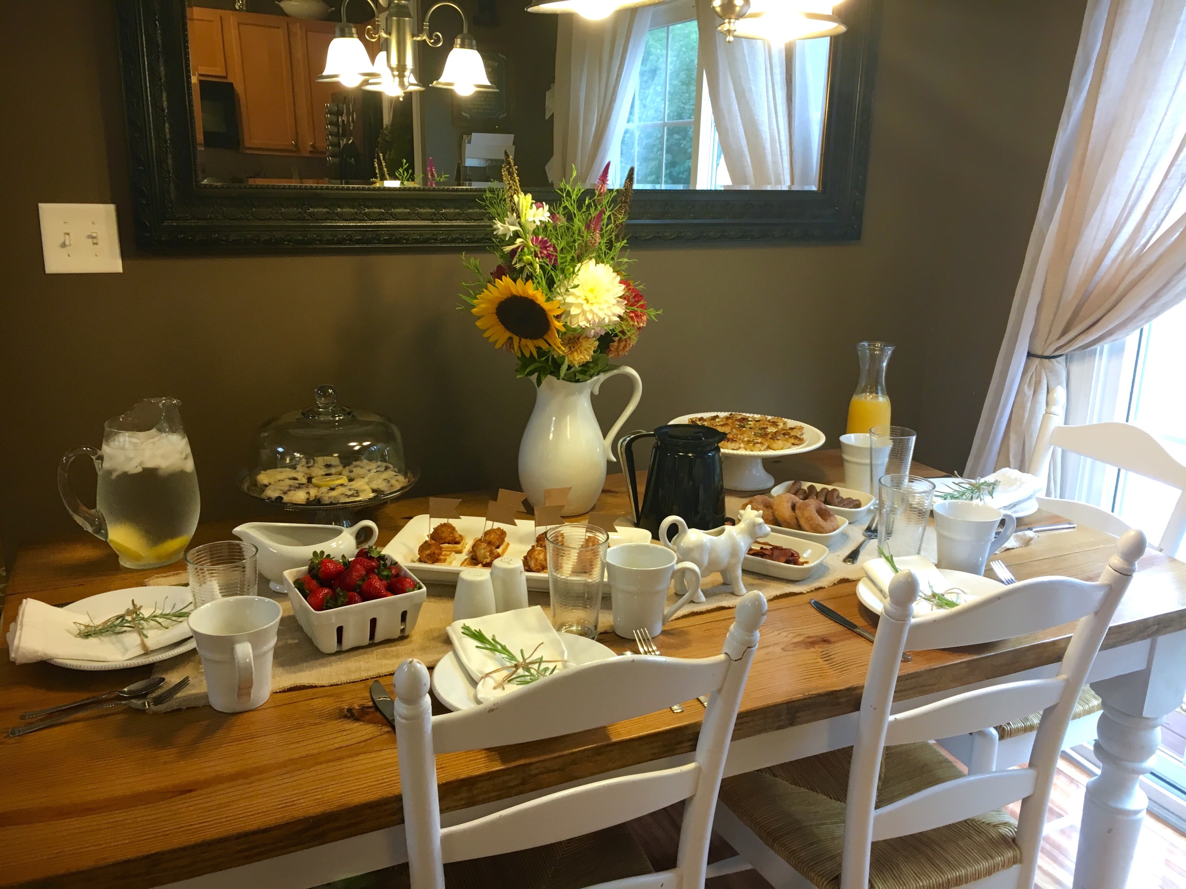 Beverages: I usually like to provide two drink choices. One always being water. It is easy to place a pitcher of water on the table and dress it up with sliced lemon. The other beverages I usually go between is coffee, OJ or mimosa. You could even do bloody marys if you see fit!