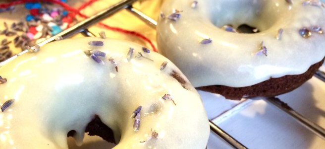 Chocolate & Lavender Donuts with White Chocolate Ganache Glaze